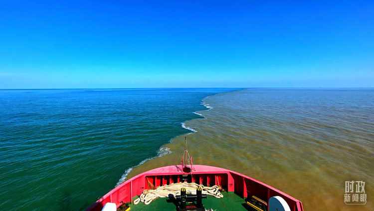 △用于海洋救援的拖轮驶入“河海交汇”之处。(总台央视记者张宇拍摄)
