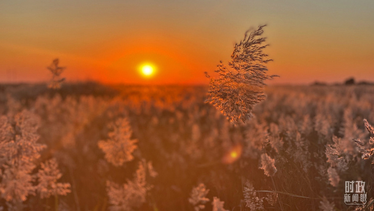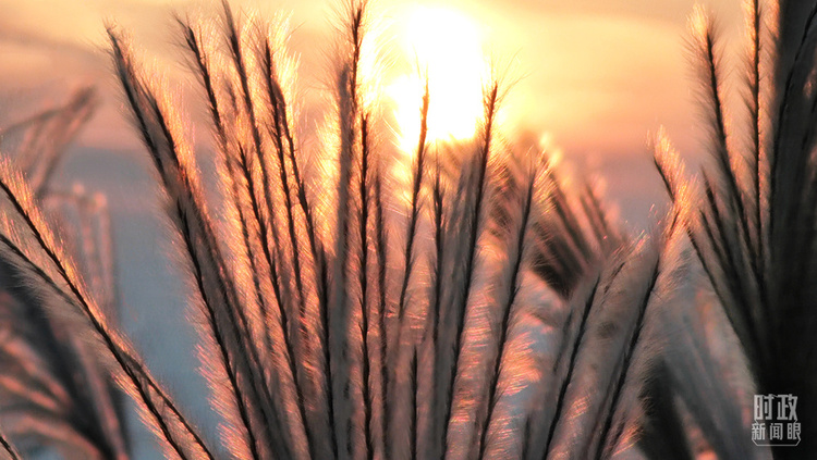 △夕阳洒向芦花,柔和静谧。(总台央视记者李炜、国广记者李晋拍摄)