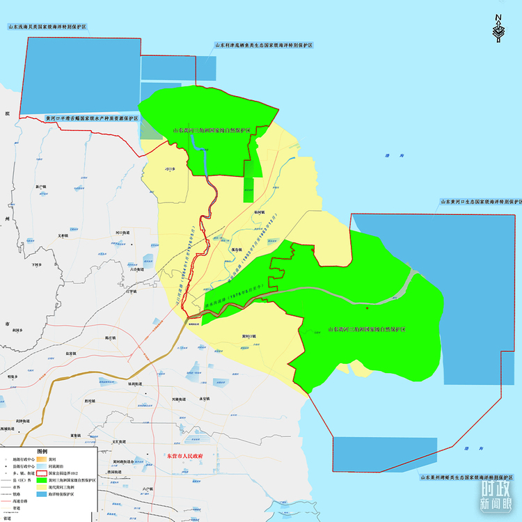 △图中,淡黄色区域为现代黄河三角洲,面积约2400平方公里;绿色区域为黄河三角洲国家级自然保护区,面积1530平方公里。(总台央视记者卢心雨提供)