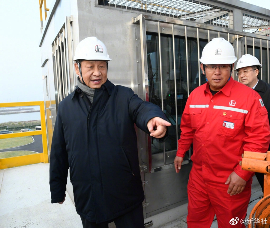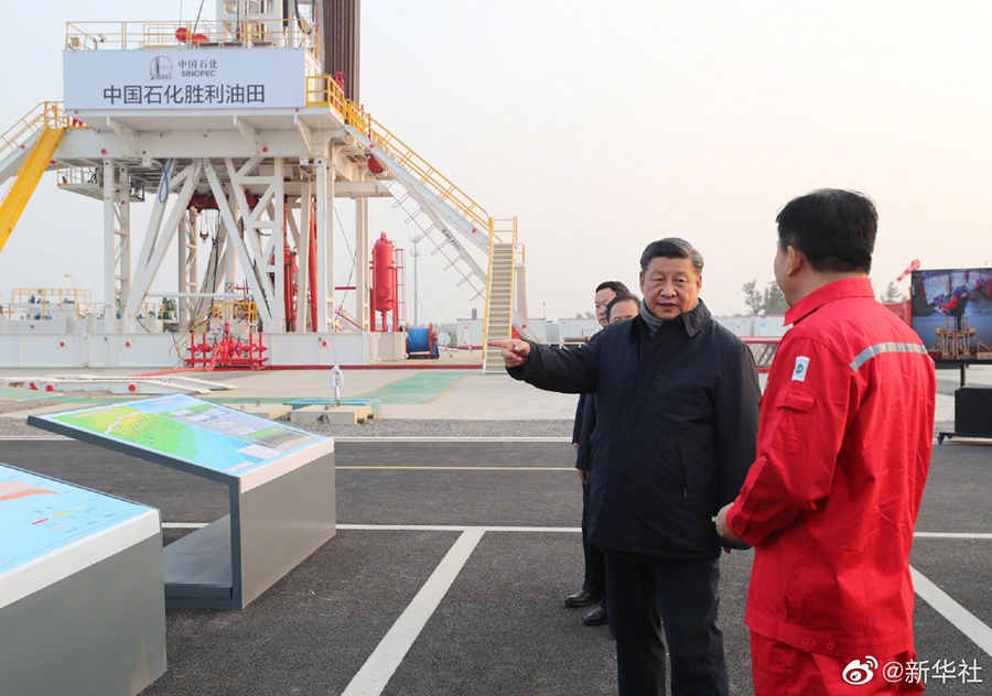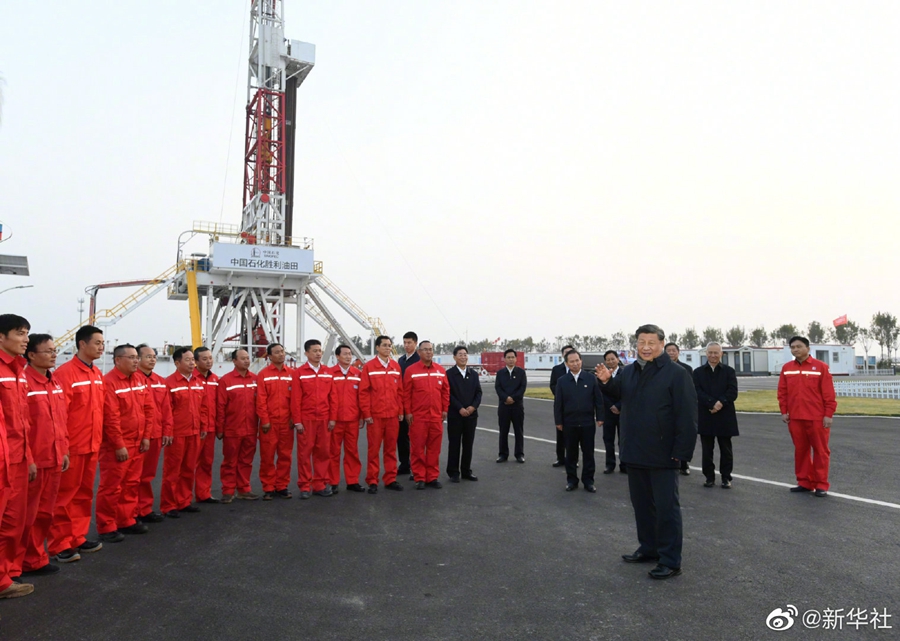 【习近平勉励广大石油工人:再创佳绩、再立新功】21日下午,习近平总书记来到胜利油田,登上钻井平台,察看作业情况,看望慰问石油工人。今年是胜利油田发现60周年。习近平代表党中央向广大石油职工致以诚挚问候。习近平指出,石油能源建设对我们国家意义重大,中国作为制造业大国,要发展实体经济,能源的饭碗必须端在自己手里。希望你们再创佳绩、再立新功。(记者:张晓松、朱基钗;摄影记者:李学仁、谢环驰、王晔)