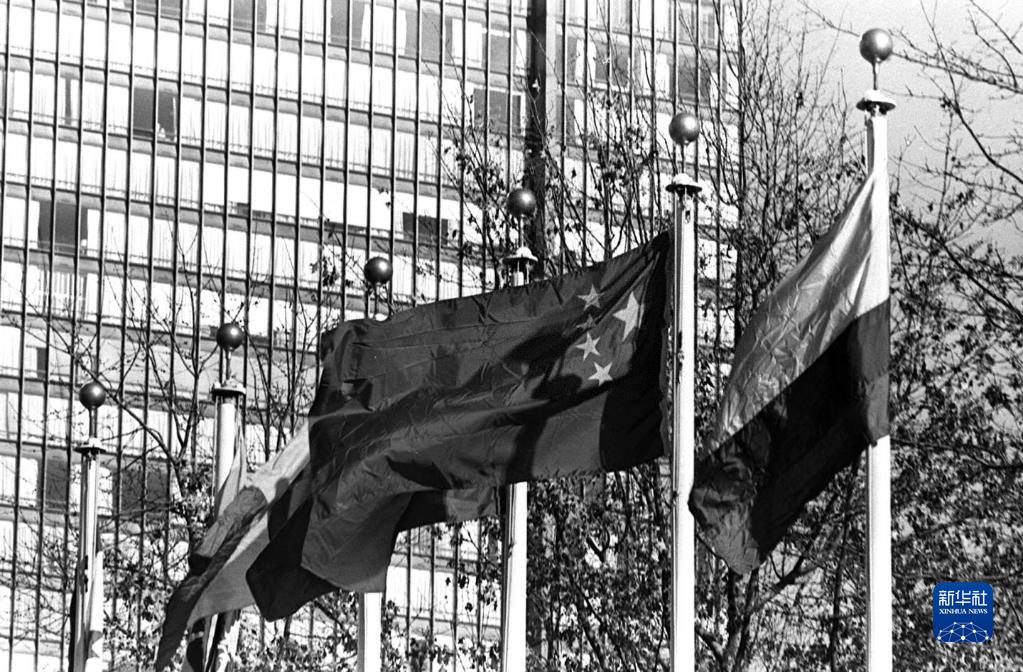 1971年10月25日,第26届联合国大会通过2758号决议:恢复中华人民共和国在联合国的一切合法权利,并立即将蒋介石集团的代表从联合国及其所属一切机构中驱逐出去。从此,中华人民共和国的五星红旗开始飘扬在联合国大厦前的广场上(资料照片)。新华社发