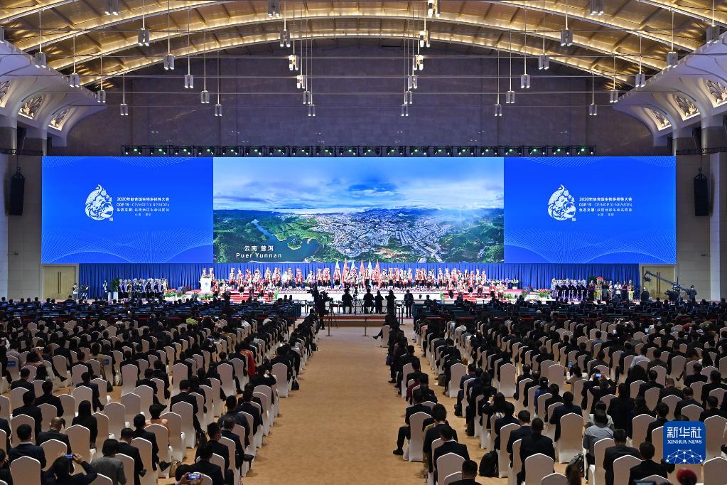 2021年10月11日,《生物多样性公约》第十五次缔约方大会在云南昆明开幕。这是开幕式上的云南民族特色演出。新华社记者李鑫摄