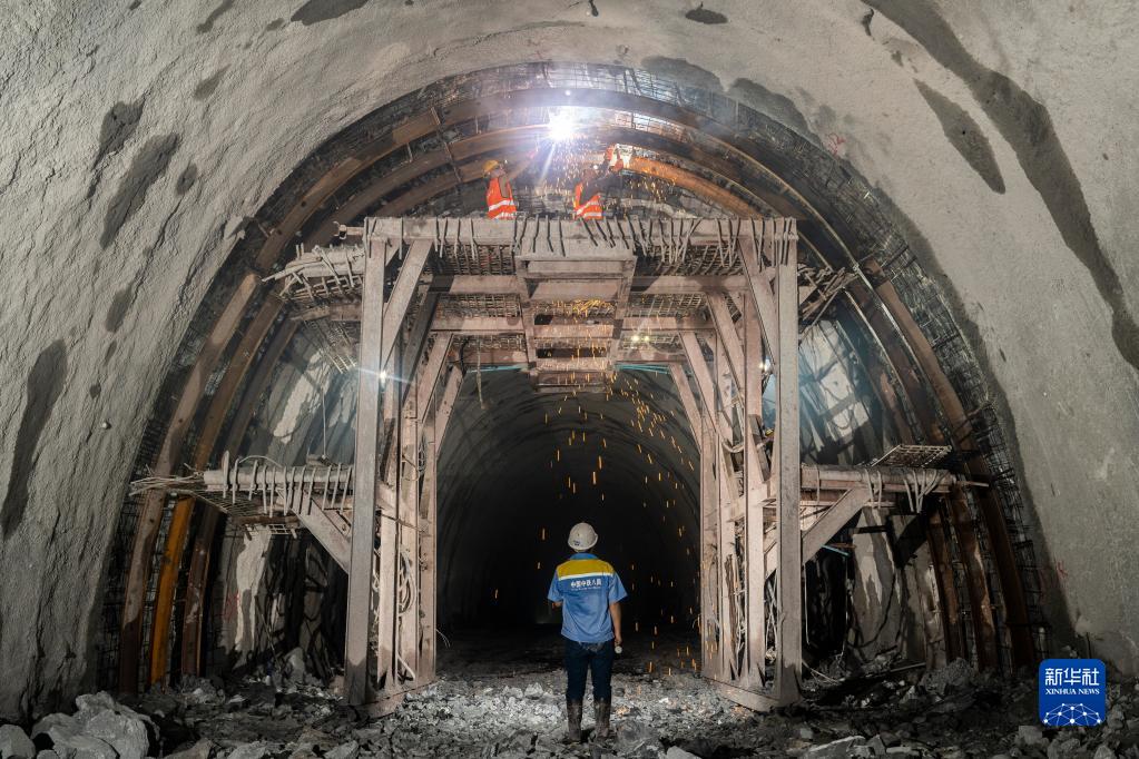 2020年9月21日,工人在老挝乌多姆赛省孟雅县的中老铁路福格村隧道建设现场施工。中国中铁八局承建的中老铁路福格村隧道于2020年9月22日贯通。这是中老铁路全线最后一条长隧道。福格村隧道全长8936米,是中老铁路全线第四长隧道。中老铁路是中国“一带一路”倡议与老挝“变陆锁国为陆联国”战略对接项目,北起老中边境口岸磨丁,南至老挝首都万象,全长400多公里。工程于2016年12月全面开工,计划2021年12月建成通车。新华社发(潘龙柱摄)