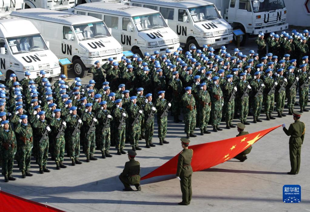 2003年12月9日,中国赴利比里亚维和部队运输连官兵出发前面向国旗庄严宣誓。当日,中国赴利比里亚维和部队首批60名官兵从北京首都机场启程。中国政府决定向利比里亚派遣550人的维和部队,从当日起分批前往任务地区。新华社记者王建民摄