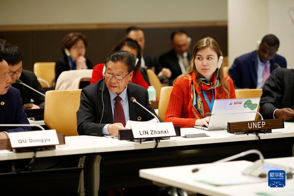 2020年4月18日,在位于纽约的联合国总部,菌草技术发明人、福建农林大学研究员林占熺(前排中)在“菌草技术:‘一带一路’倡议对促进落实联合国2030年可持续发展议程的实质性贡献”专题研讨会上发言。菌草技术是来自中国福建省的一项技术。中国研究人员发现,一些草本植物可替代木头用于培育菌类,这就是菌草。菌草可被用于生产多种食品、饲料、肥料以及生物质能源等,还可用于生态环境保护和治理。这项技术投入少,见效快,效益高。菌草已经扎根100多个国家,“一带一路”沿线的不少发展中国家朋友称它是来自中国的“扶贫草”,有人干脆称之为“中国草”。新华社记者李木子摄