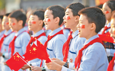 国庆假期,重庆市北碚区的小学生们高唱《歌唱祖国》。