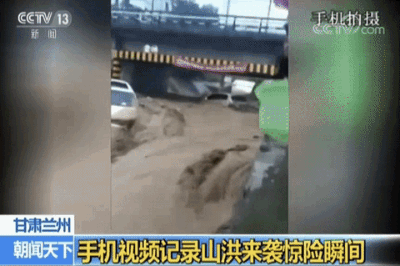 通过当地市民手机拍摄的画面可以看到,兰州市多处道路大面积积水,特别是在安宁区大量雨水从山上冲下,造成部分路段一度交通中断。