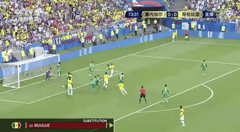 下半场,塞内加尔有很多进球机会,但门前处理都过于草率,无法取得进球。第74分钟,哥伦比亚打破僵局,金特罗开出角球,后卫米纳头球破门。