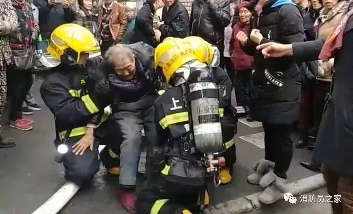 1月5日中午,上海普陀区一民宅室内发生火灾。在灭火救援期间,一名90岁高龄的老奶奶被消防员背出火场,狂奔大约有400米左右。到了弄堂口,两名消防员以腿做凳,供老人休息。