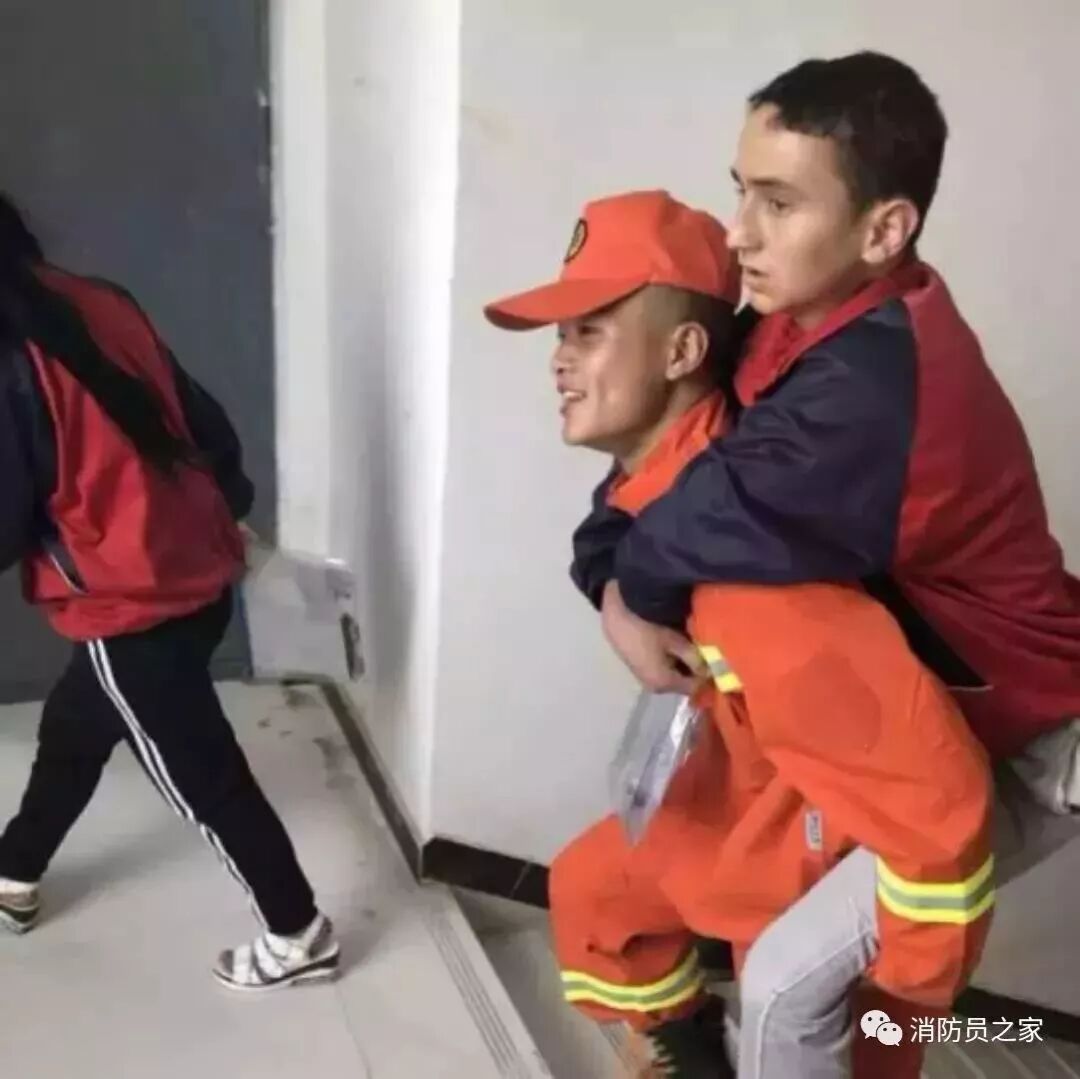 6月8日,高考的第二天,新疆喀什消防支队叶城中队官兵在叶城县第四中学高考点执勤时,发现行动不便的考生,将考生背进考场。