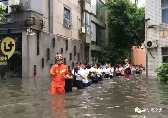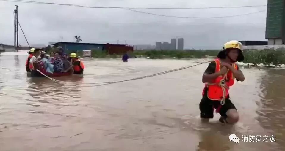 6月8日,受台风“艾云尼”外围影响,江西省泰和县境内普降暴雨,造成水位暴涨,这位老人因左腿有疾行动不便,冲锋舟无法靠近,为了不使她身上被水弄湿,消防战士让其骑在肩上,徒步趟过齐胸深的洪水。