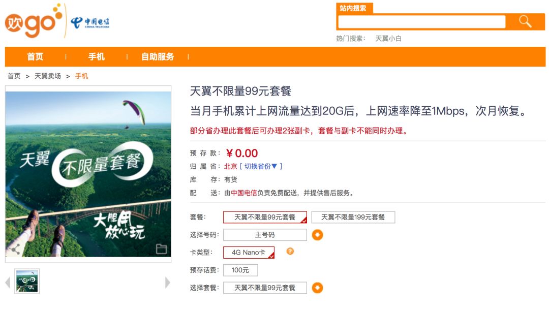 但是很多消费者并不了解这种“潜规则”,而各地运营商网上营业厅大多置顶宣传不限量套餐,只有点进商品详情页,才能看到用灰体或小字标识的限速方案。