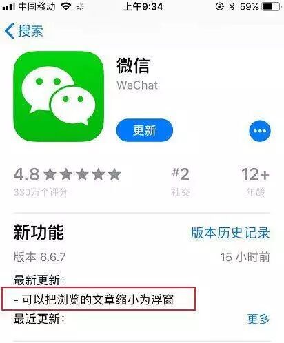 用户浏览网页内容的时候,可以随时缩小为浮窗。方便大家随时回到微信主界面,查看、回复消息。