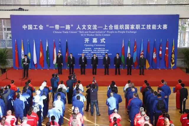 职工技能大赛。2017年11月10日上午,中国工会“一带一路”人文交流——上合组织国家职工技能大赛在河北廊坊中国石油管道局管道学院开幕。此次大赛由外交部发起,中华全国总工会主办,中国石油天然气集团公司承办,旨在对接上合组织产业调整和经济发展需求,加强上合组织职工的专业交流、提升上合国家职工技能水平,展示中国产业工人形象,推广中国大国工匠精神,增进友谊、深化合作。来自上合组织秘书处和亚洲焊接联合会的代表,以及上合组织5个成员国、3个观察员国及3个对话伙伴国,共计11个国家的代表参与了此次活动。