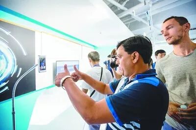 △5月29日,上海合作组织成员国媒体代表在北京参观中关村前沿技术创新中心。