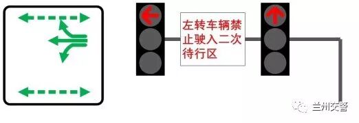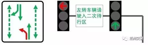通行状态一 当左转灯、诱导屏均显示绿色时,左转车正常左转驶出路口。 通行状态二 当左转灯显示红色、诱导屏显示绿色时,左转车可进入“二次通行等待区”。 通行状态三 当左转灯、诱导屏均显示红色时,左转车禁止通行,停车等待。