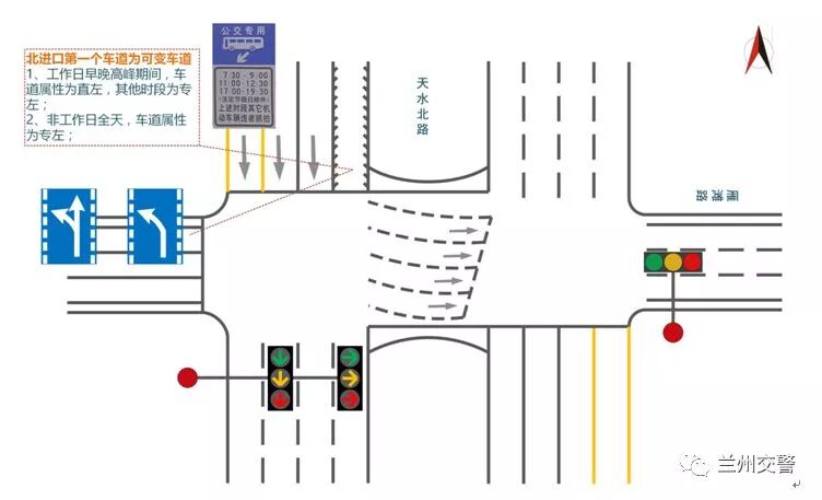 近期兰州天水北路-雁滩路十字路口发生了新的变化。为缓解高峰时段天水北路-雁滩路路口北侧直行车道压力大的情况,交警蜀黍在该路口北侧增设了可变车道与北向东左转车辆“二次通行等待区”,并安装诱导屏引导驾驶员通行。