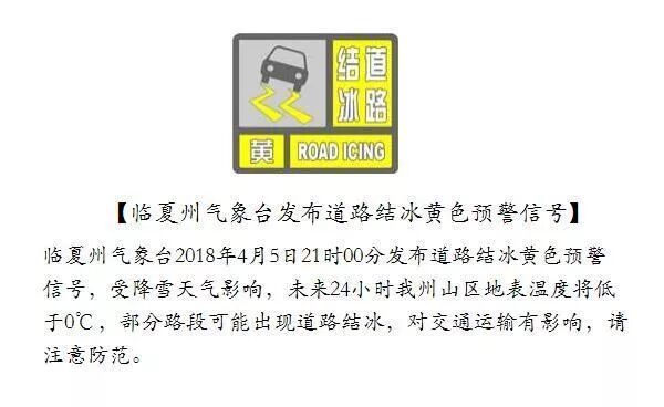 甘肃多地发布道路结冰黄色预警