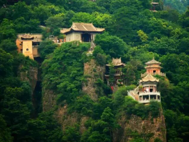 没有喧闹,只有虫鸣鸟叫声,在一个造型奇特的崖底下,佛寺和道庙排成一排,这样的独特景色在别的地方很难看到。