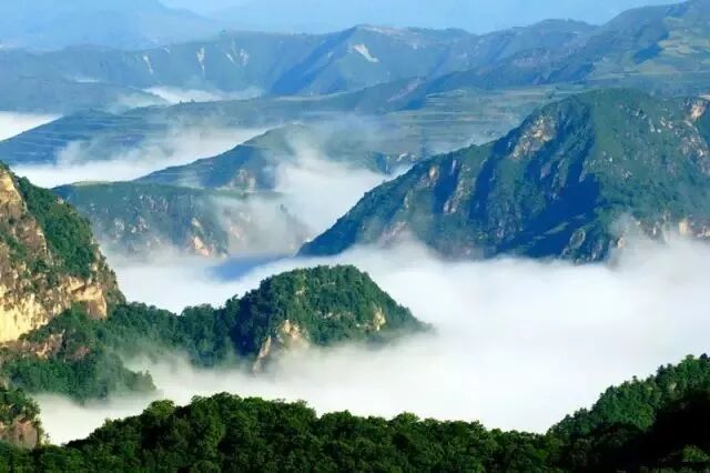 莲花山群峰俊秀,犹如莲瓣,顶峰高耸、恰似莲蕊,整个山峦岚气笼罩,满目绿海,酷似一朵初绽的莲花盛开在绿波翠色之中。