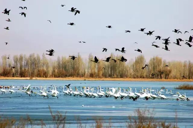 张掖国家湿地公园是西北地区最大的几个城市湿地公园之一,这里春有鸟迁,夏有荷花,秋天芦苇金黄飘荡,冬天雪飘冰封万里。园内还有西北地区十分少见的清澈湖泊、大面积芦苇荡、葱郁树木和草坪花园这些优雅的景观。