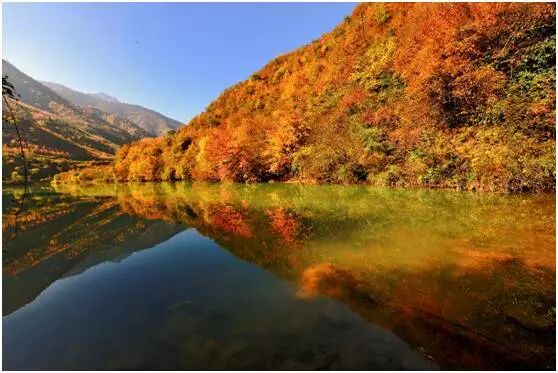 陇南官鹅沟全长32公里,前14公里镶嵌了13个颜色深浅不一的碧绿湖泊,后连绵了18公里的高山密林,湖泊高山之间9道险峻峡谷高耸入云,更有11处从山顶或半山悬崖直泻而下的飞瀑,何其壮观!