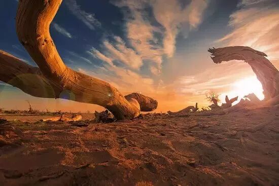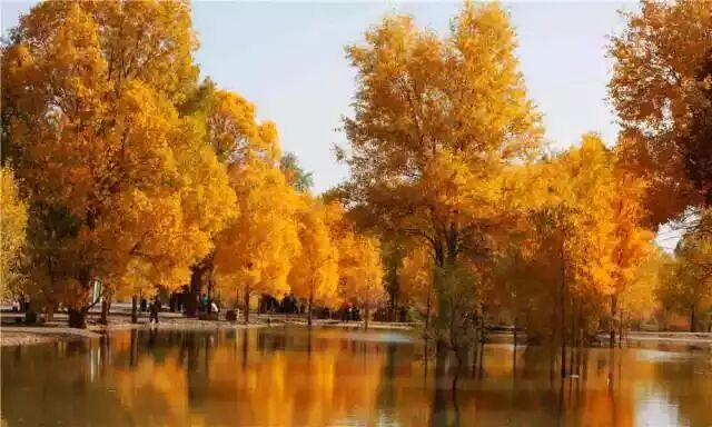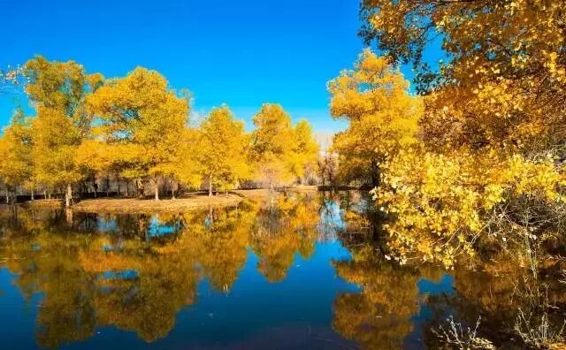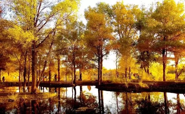 不同于额济纳旗胡杨林,因为有水的缘故,金塔胡杨林少了一分苍凉,多了一分灵动。