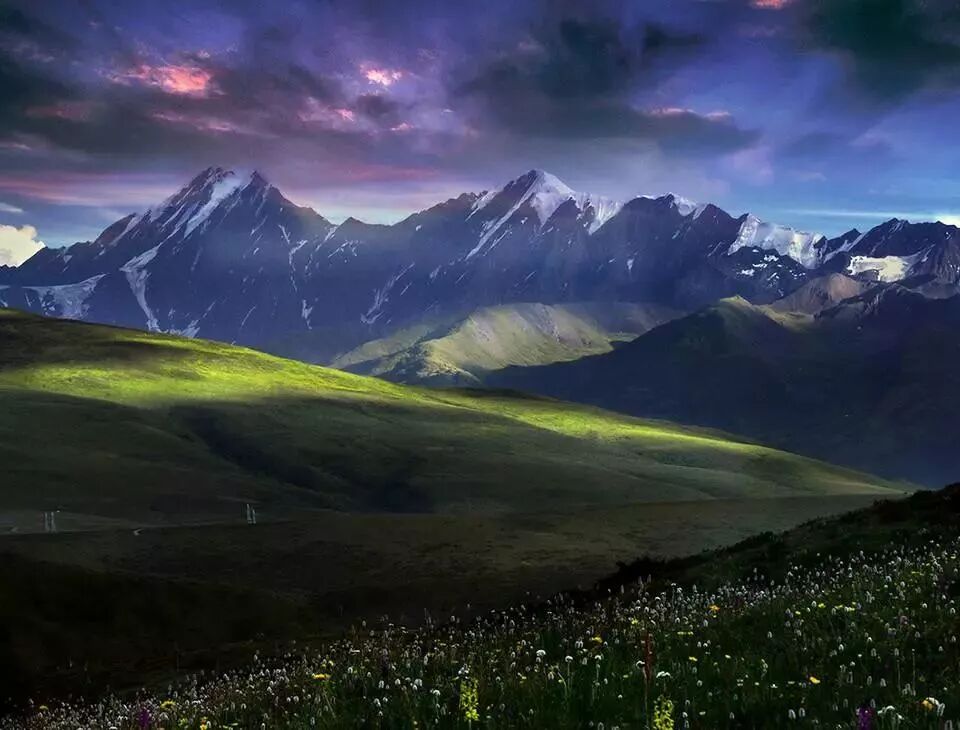 这里是青藏高原东北部一个巨大的边缘山系,原始、纯真、古朴。立夏之后,山中山林虽一片苍翠,但山顶却白雪皑皑,常年不化的冰川,在阳光的照射下,更是无法描摹的瑰丽。