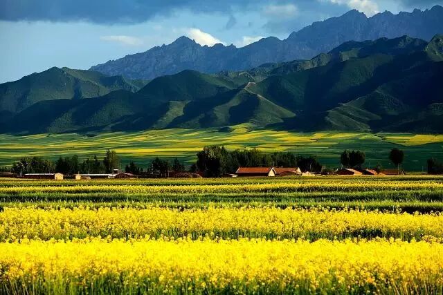 扁都口是古代丝绸之路的南路,夏季的时候漫山遍野都是油菜花,处处洋溢着清新的花香。金黄色的油菜花田、散落的白色毡房,蓝天白云下,呈现一幅生机盎然、幸福安乐的美好图卷。