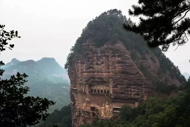 麦积山的形状很奇特,孤峰突起,犹如麦垛。那陡崖峻壁上开凿而成的成百上千蜂窝似的洞窟和安坐的佛像给人带来强烈的视觉冲击,让人难以忘记。