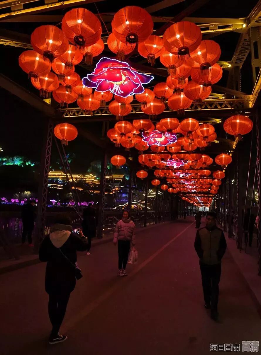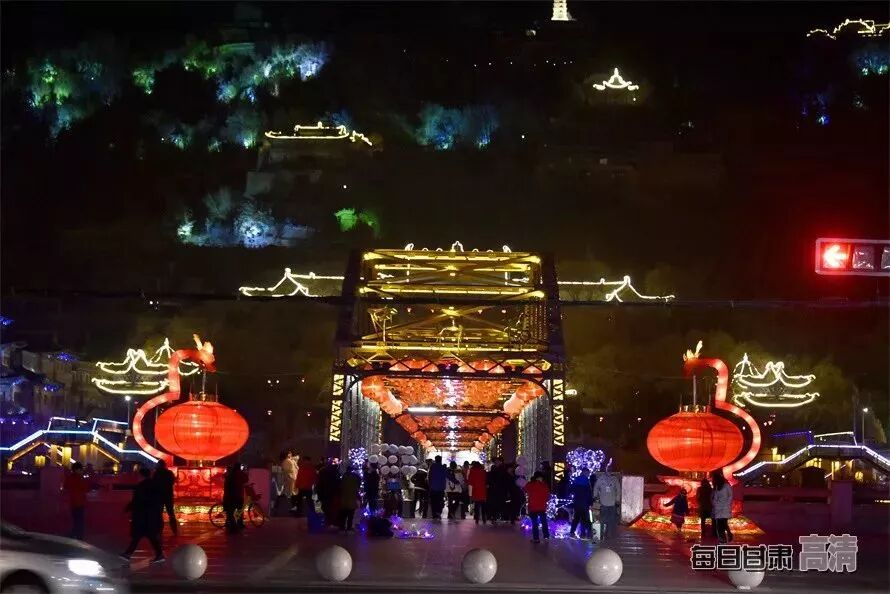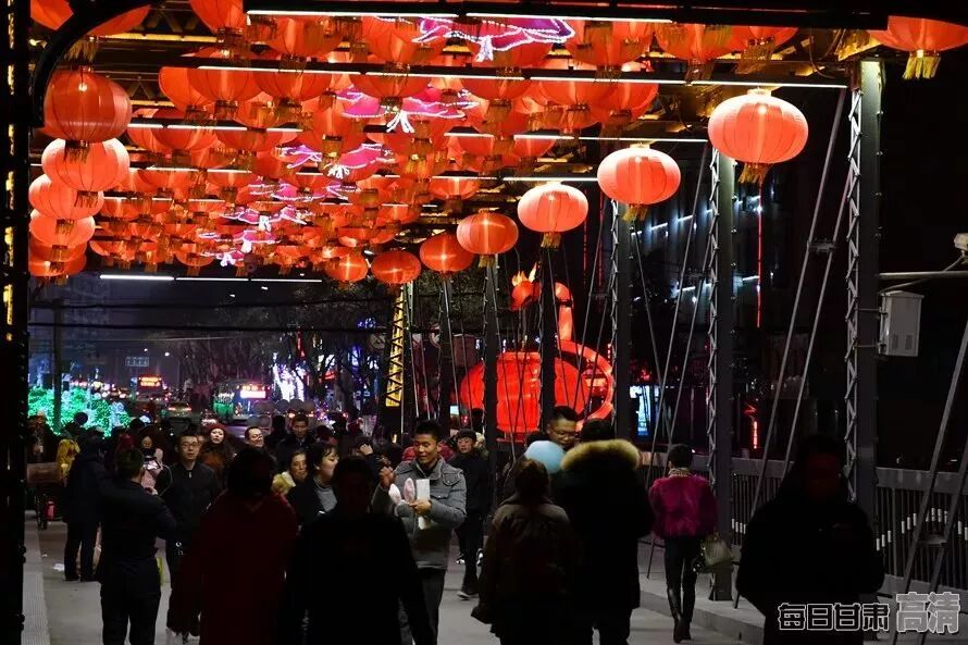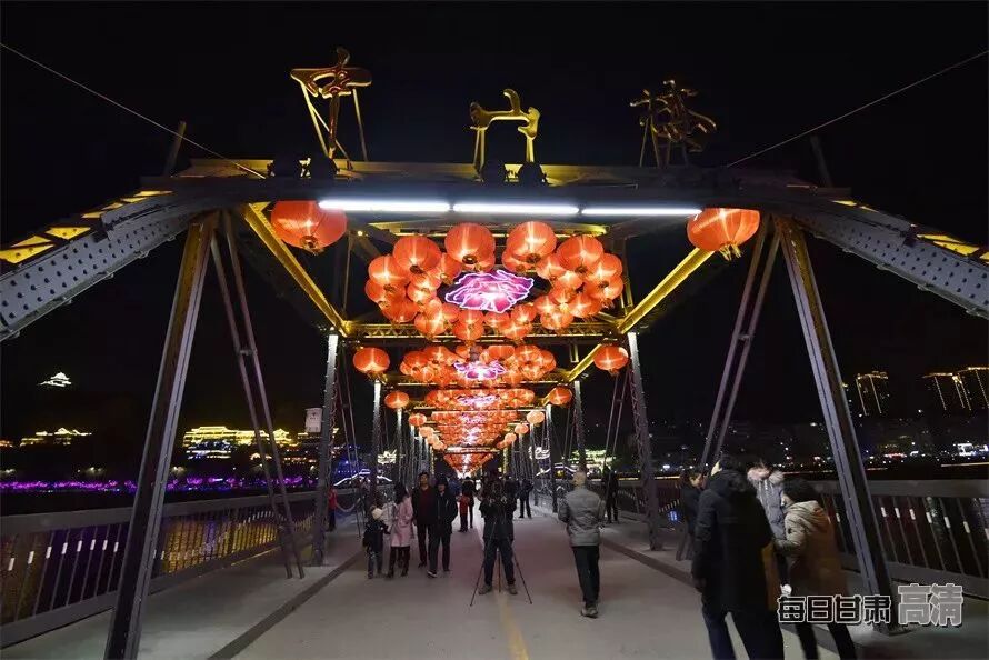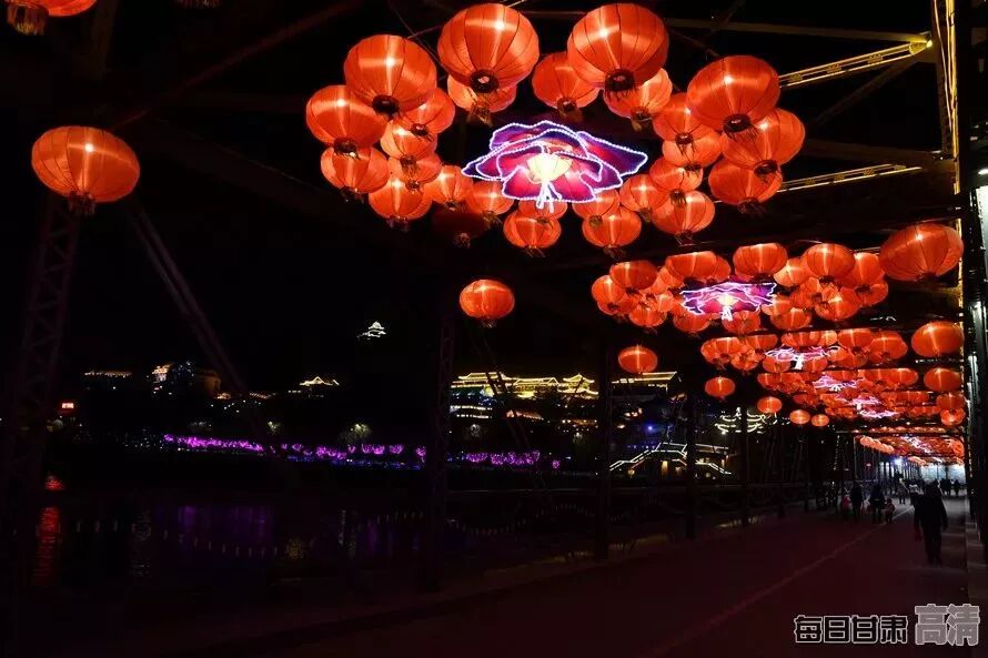 夜幕下,有“天下黄河第一桥”之称的兰州中山铁桥上高挂的红灯笼格外鲜艳美丽,百年铁桥披上盛装,给整个城市增添了浓浓的节日氛围。东方红广场张灯结彩,美轮美奂,整个城市中洋溢着喜庆吉祥的气息,市民或驻足拍照、或赏灯游玩,沉浸在一派欢乐祥和的节日气氛之中。