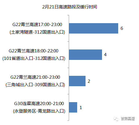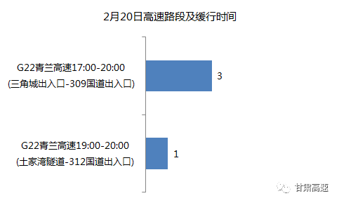 *春节期间甘肃省高速拥堵趋势为:假期高速出程拥堵较为平缓,2月20日18点至22点2月21日15点至19点为返程高峰。