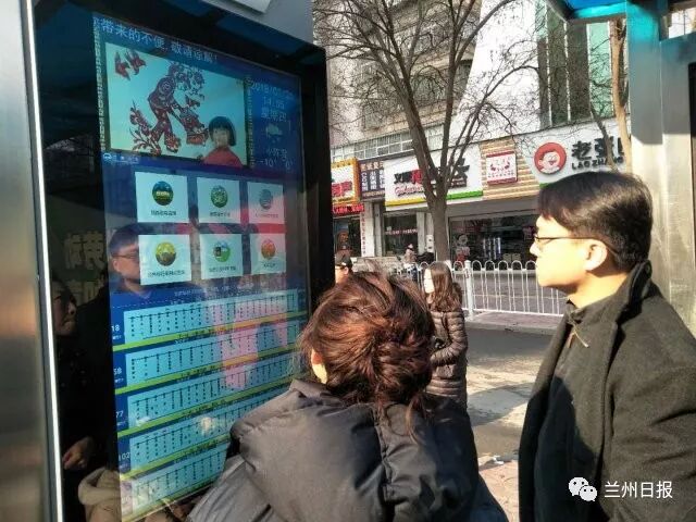 1月25日下午4点左右,记者来到位于西津东路的七里河公交集团西行站,看到这里之前安装的传统公交站牌已被外观更具活力和时尚感的新型站牌所代之。值得一提的是,该站牌后部采用动感滚动灯箱,一旦出现站牌停电的情况,内部蓄电池可以支持画布自动滚动到线路牌的画面作为应急措施,保证候车市民可以正常获取线路信息。"新站牌给人的第一感觉就是高、大、上,触摸屏还可以查询到线路换乘等非常接地气的内容,功能较之前完善了不少,尤其对于外地来兰的游客非常实用,还能让他们感受到兰州这个城市透露出的人性关怀。"候车的市民韩女士开心地说道。