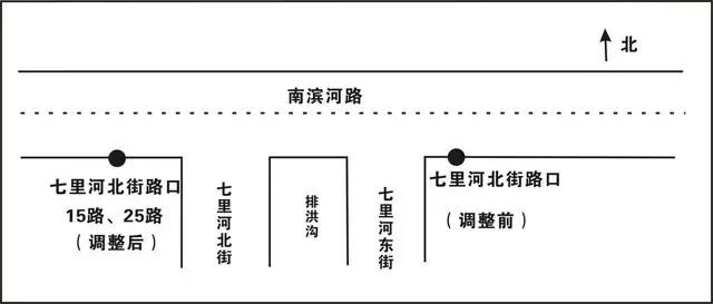 3. 将15路、25路南滨河路“七里河北街路口(东行)”公交站点向西迁移140米停靠。