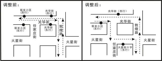 118路:由华联超市开往金港城时线路不变;由金港城开往华联超市时,行驶至联发小区站线路不变,右转进入任家庄街单行道,左转进入火星街后,在右转进入敦煌路至“BRT兰州四中”恢复原线路运行。(停靠火星街十字站,不再停靠光华街东行站)