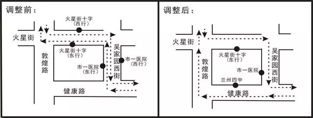 108路:由兰州西站开往金城御景园时线路不变;由金城御景园开往兰州西站时,行驶至敦煌路“兰州四中”线路不变,在西站什字右转进入西津路恢复原线路运行。(停靠电信局门前“西站什字西行站”,不再停靠“柳家营南行站点”)