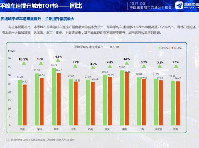据了解,高德地图公布的2016年三季度兰州的拥堵排名是第五,而兰州最为拥堵的时候是全国排名第四。自2017年全市开展交通秩序大整治行动以来,兰州市的交通拥堵状况持续好转:2017年第一季度全国排名22,第二季度排名33,第三季度排名40,拥堵排名不断下降。与去年同比,全国100个主要城市有42%的城市拥堵都是与去年基本持平的,兰州本季度的拥堵延时指数下降7%。