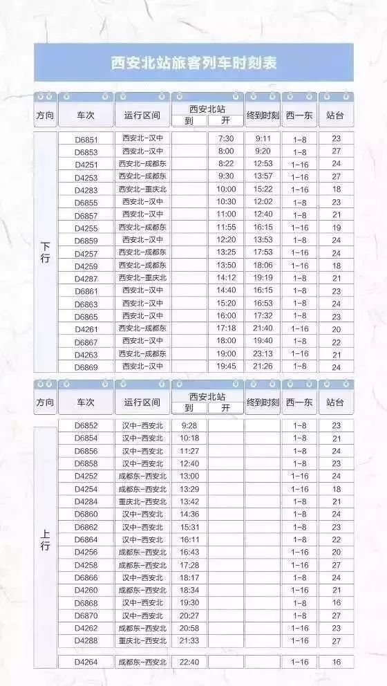 预计年底前调图后,西成高铁将满图运行,共安排62对动车组,其中直通动车组49对,西安北到成都东36对、重庆北12对、到汉中1对。