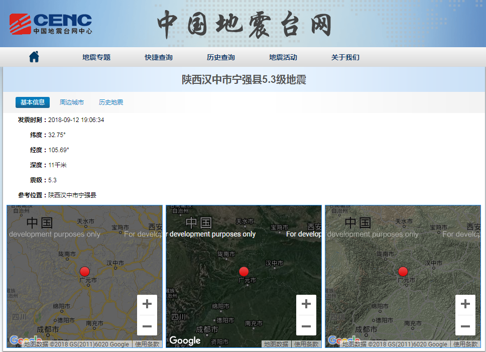 陕西汉中市宁强县发生5.3级地震 震源深度11千米