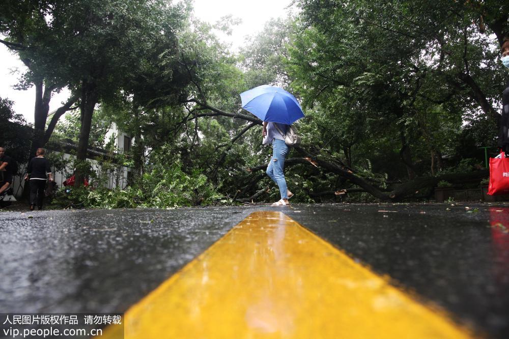江苏扬州:受台风“安比”影响 大树被大风刮断