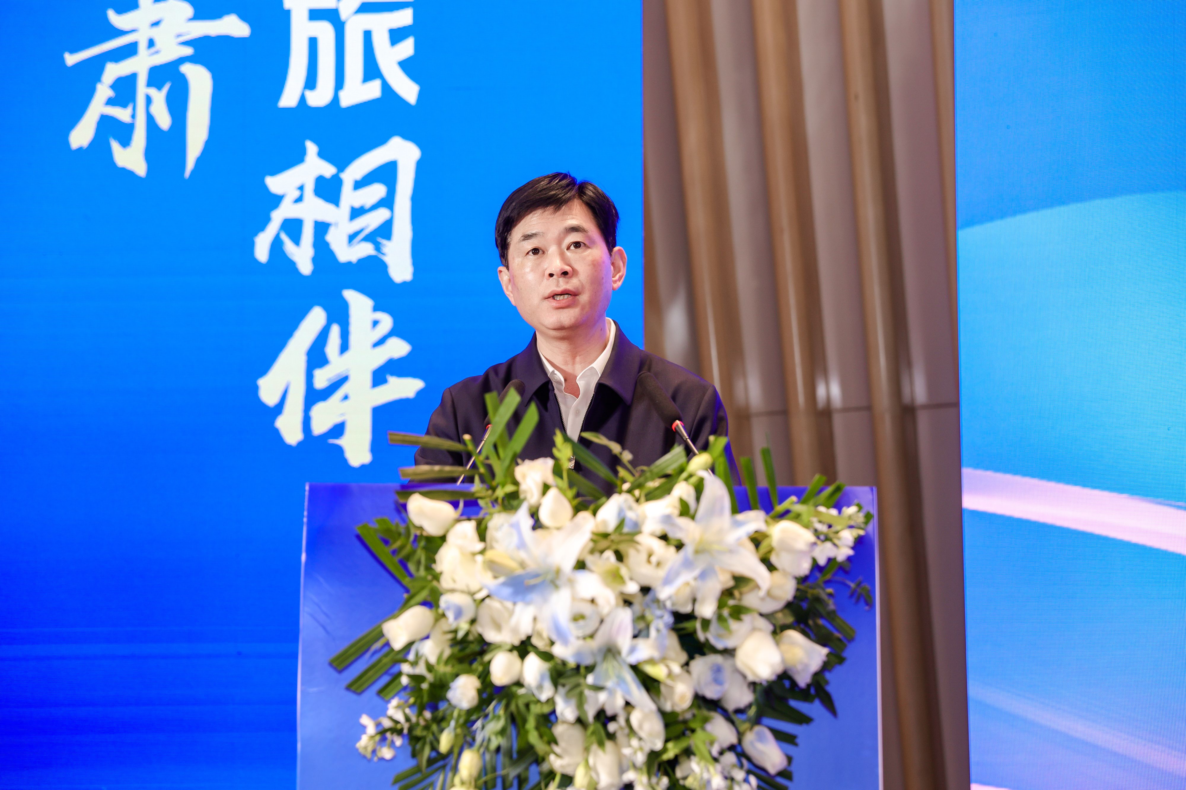 甘肃省民航机场集团党委委员、副总经理黄英海致辞。集团市场部供图