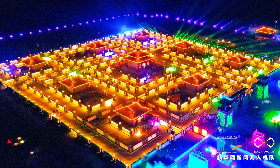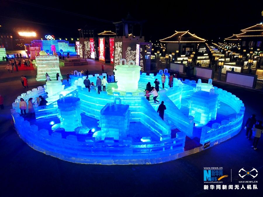 灯阵内的冰雕景观。新华网发(成学磊摄)