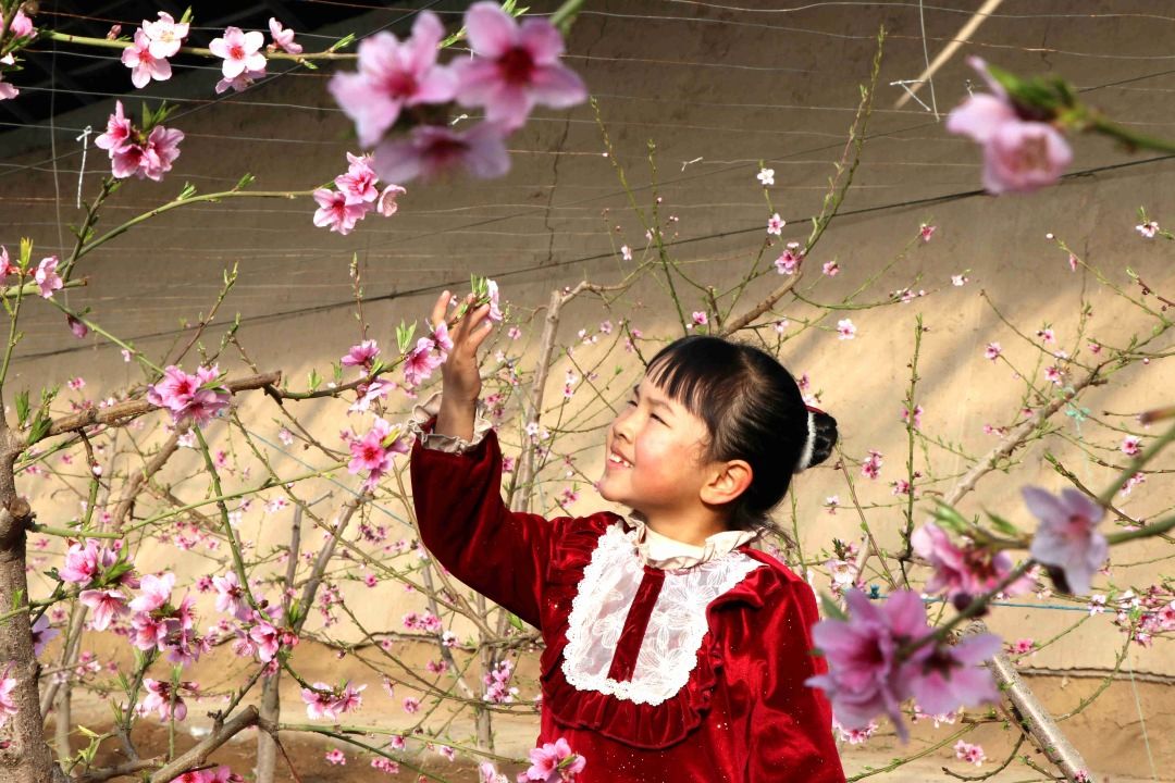 “桃花春色暖先开,明媚谁人不看来。”春节期间,甘肃省民勤县红旗谷现代农业产业园的温室大棚里桃花、李花、樱桃花喜绽枝头,为节日增添喜庆,引来众多游客赏花拍照。