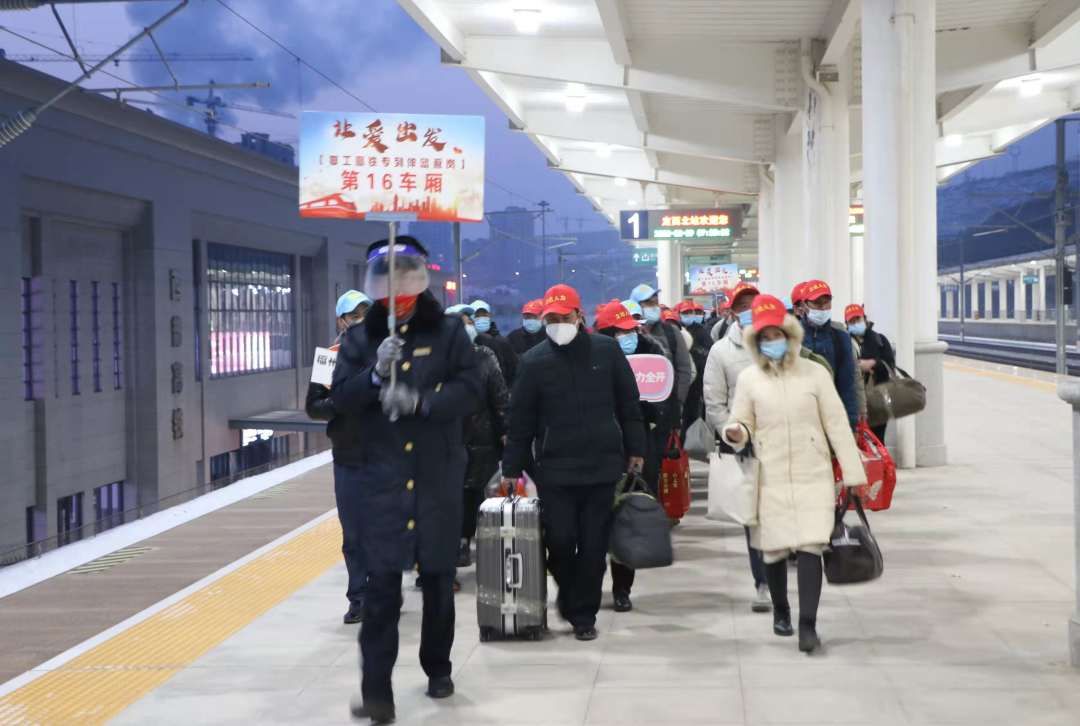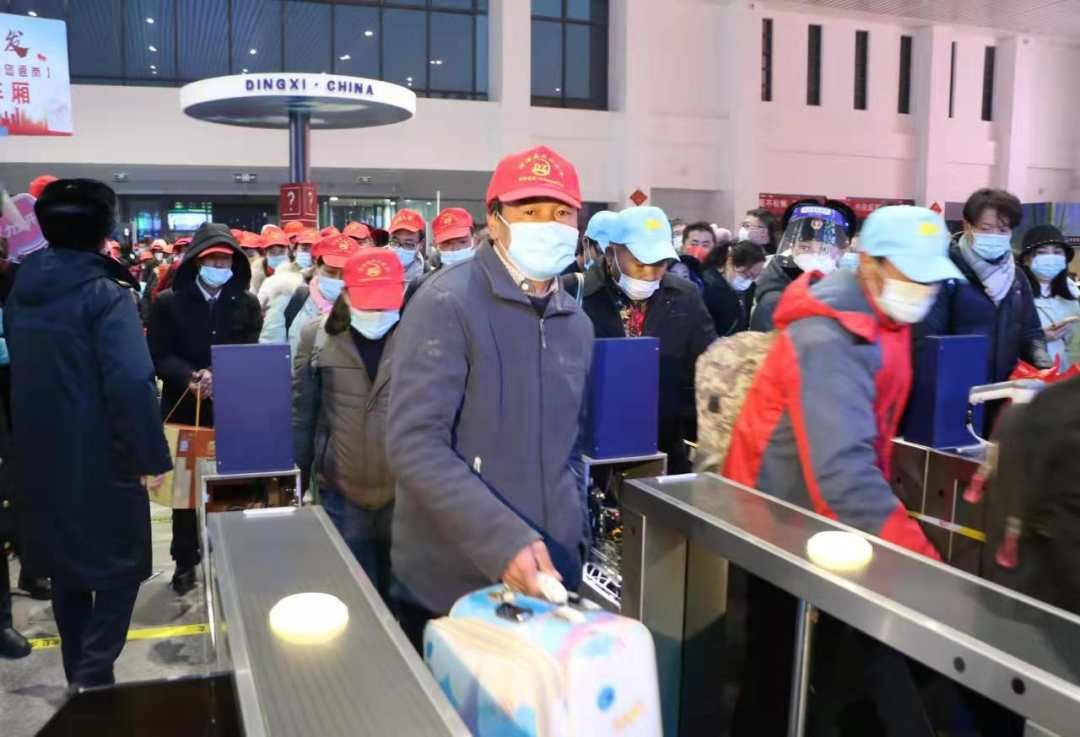 2月9日上午8点14分,G1904次列车在定西北站准点启动,甘肃省定西市535名务工人员乘坐“点对点”定制免费高铁专列从定西北站直达福州市返岗务工。