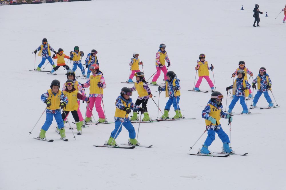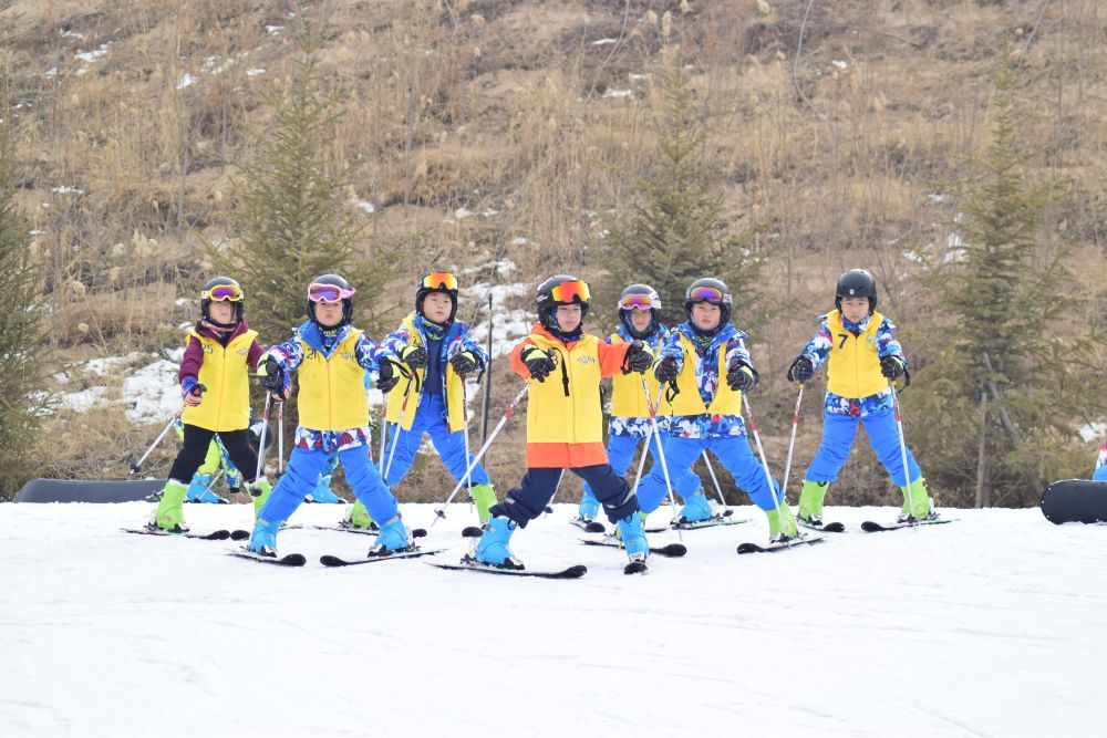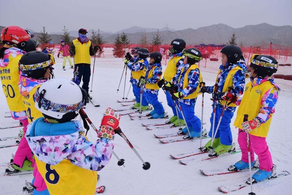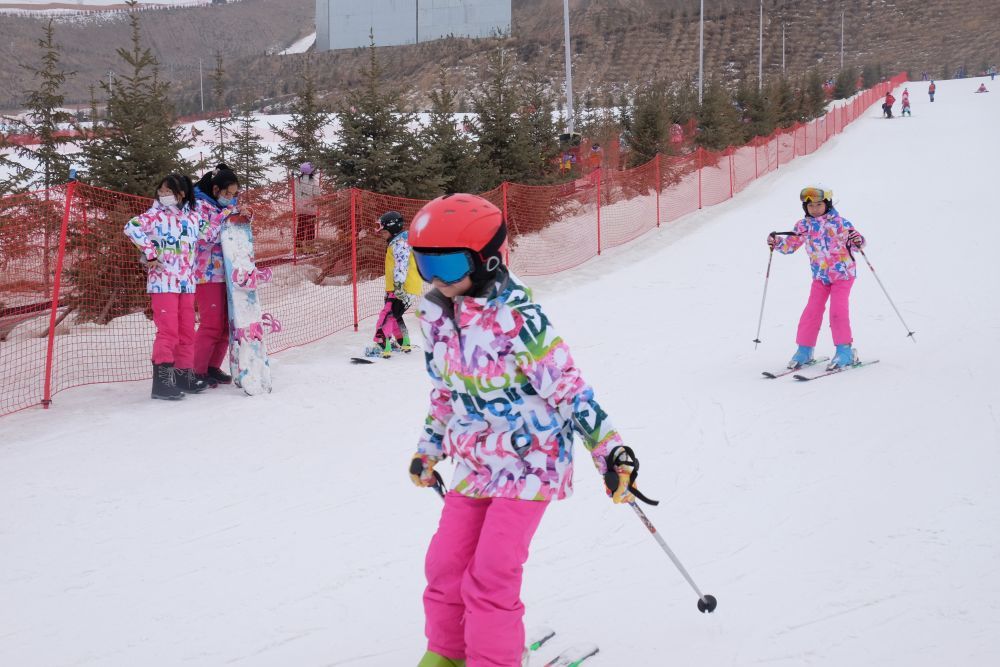 在龙山国际滑雪场内,参加滑雪冬令营的孩子们正在教练的指导下练习。(受访者供图)