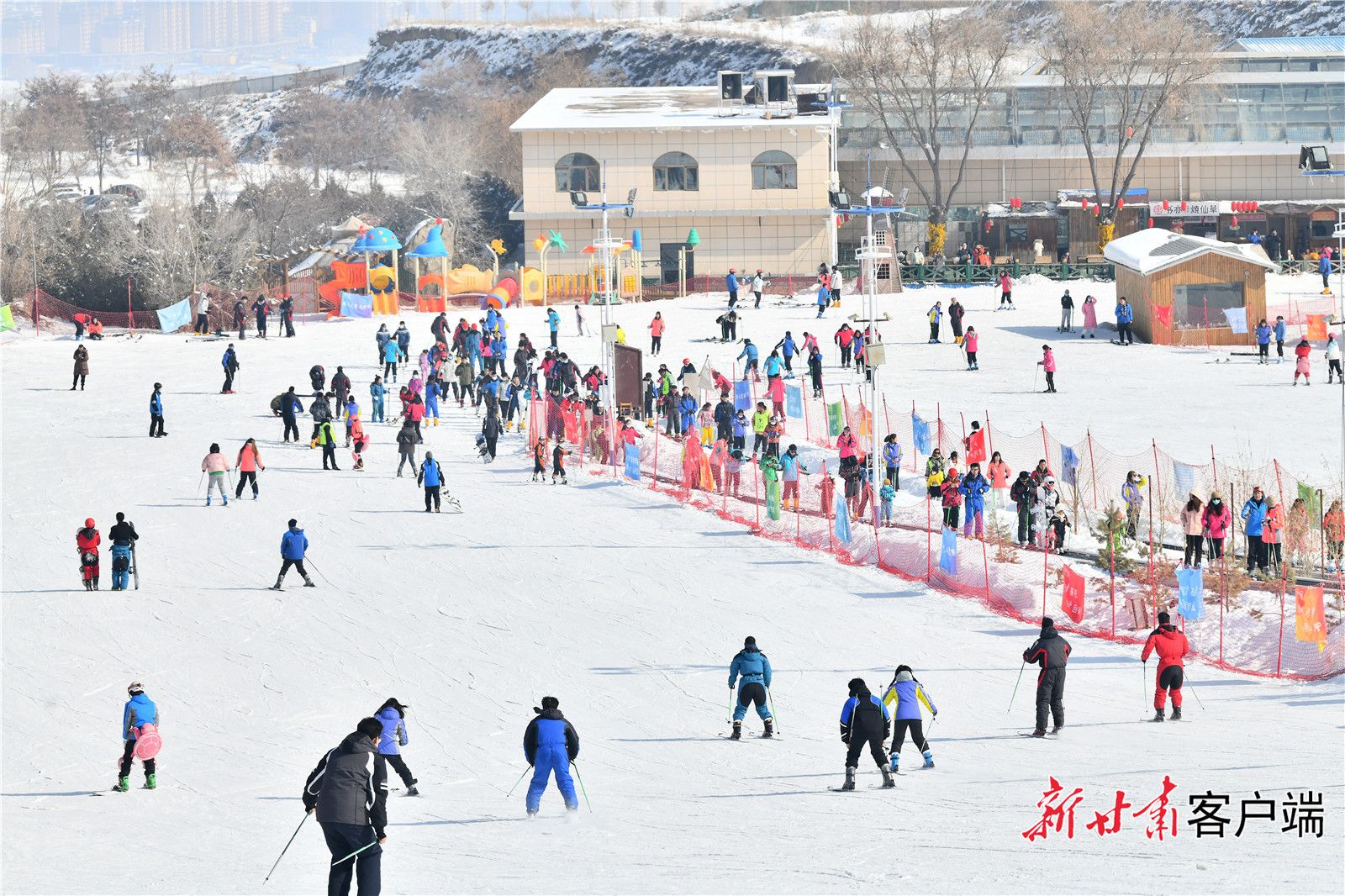 滑雪场人群熙攘。