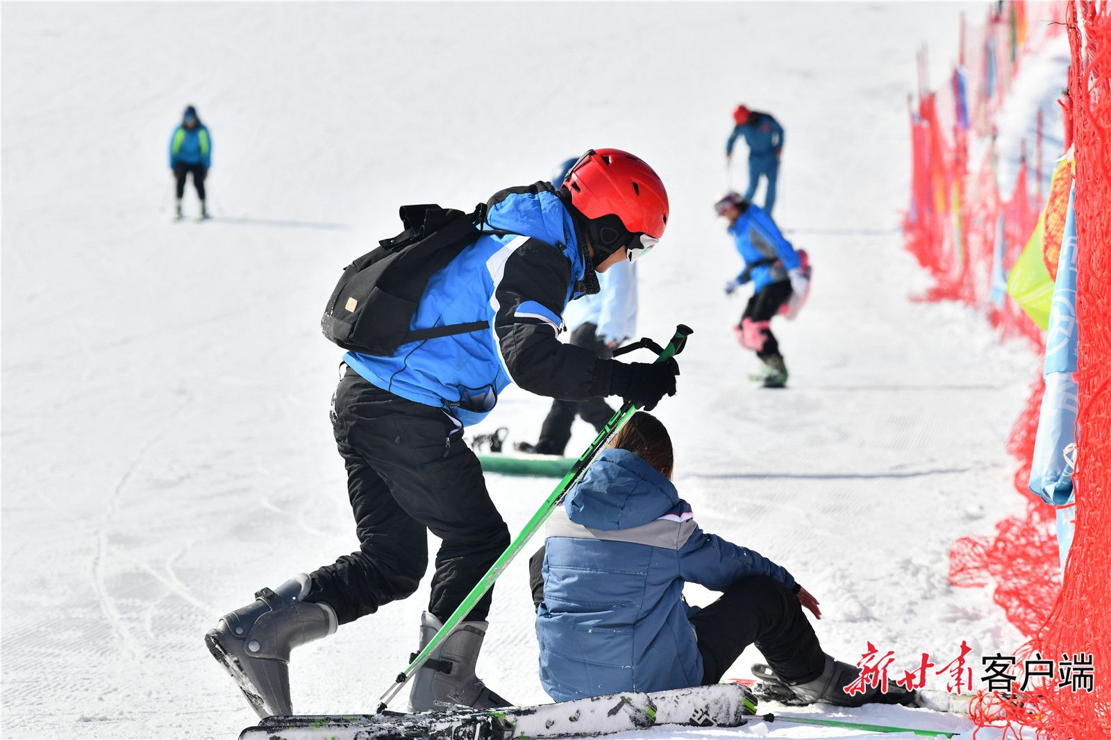 雪道上的“团结”瞬间。