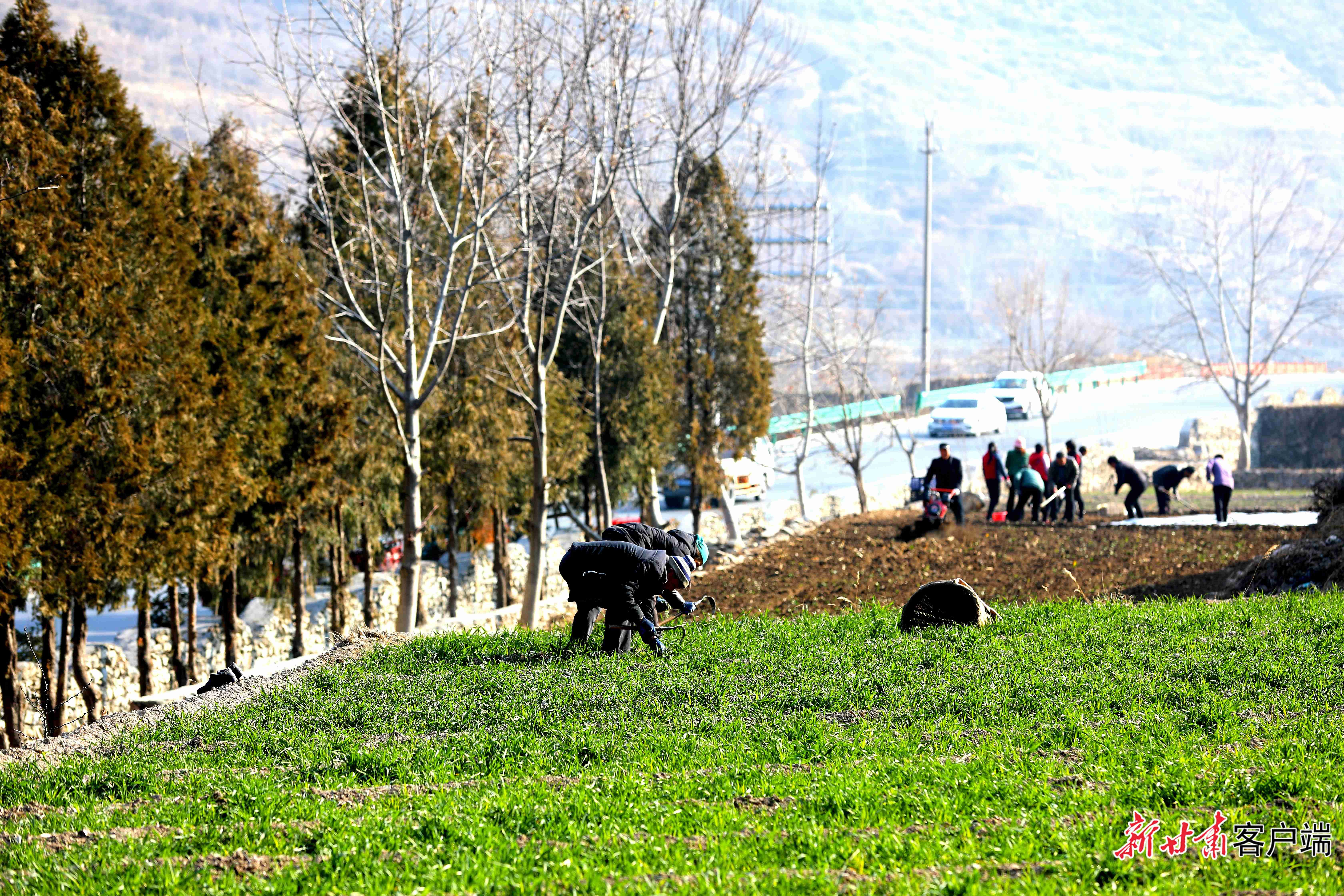 随着气温回暖,在有着“藏乡小江南”美誉的舟曲县,村民们正在田间地头忙着给冬播的油菜和小麦开展除草、间苗、定苗、保墒、施肥等作业。