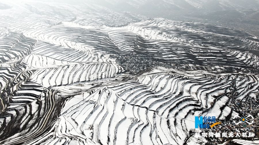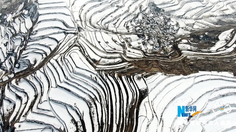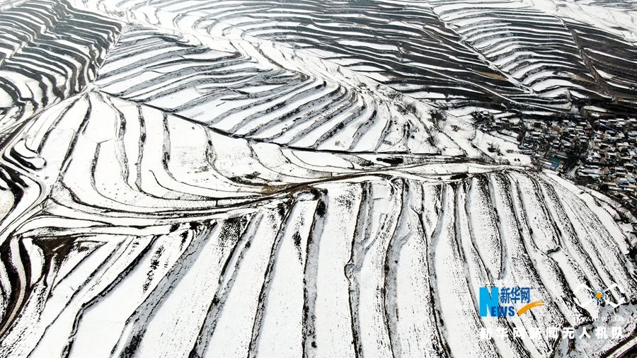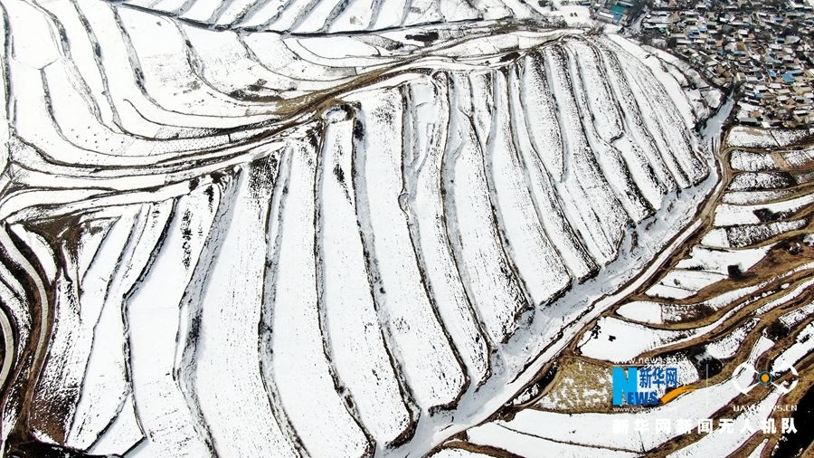雨水节气前夕,地处西部干旱山区的甘肃省陇南市宕昌县出现降雪天气,一片片梯田在白雪覆盖下和村庄构成一幅幅水墨画卷。