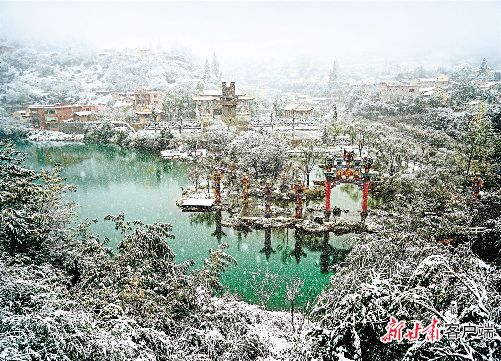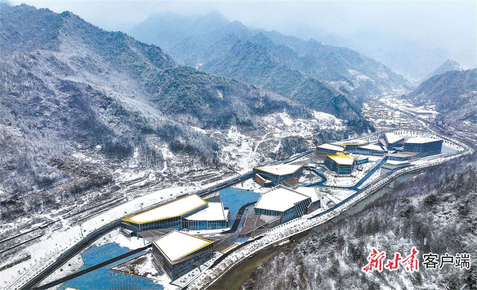 白雪覆盖下的康县“一带一路”美丽乡村国际论坛永久会址愈发迷人。新甘肃·甘肃日报通讯员 左竹林